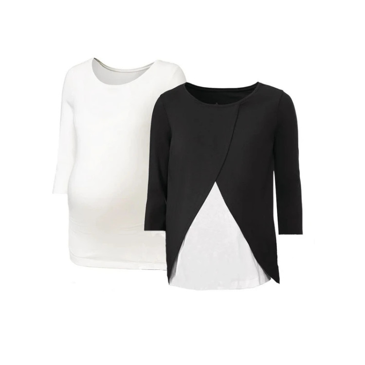 بلوز زنانه بارداری آستین بلند زیر و رو پک ٢ عددی سفید و مشکی اسمارا