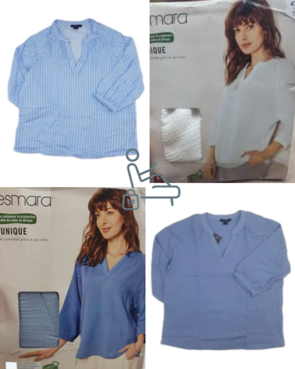 بلوز زنانه برند اسمارا رنگ سفید سایز ٤٢ رنگ آبی سایز ٤٢ رنگ آبی سفید راه راه سایز ٤٦ جنس موسلین
